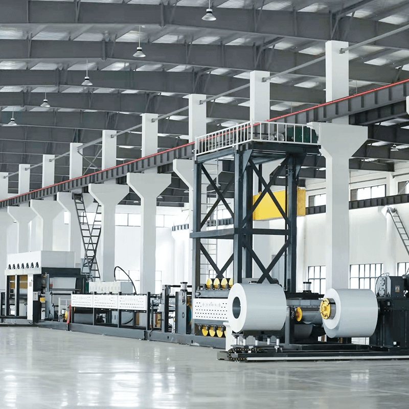 Línea de producción de laminación: esta línea aplica un proceso adhesivo o de alta presión y alta temperatura a láminas de acero galvanizado, alumbre-zinc o zinc-aluminio-magnesio, uniendo firmemente una película de polímero a la superficie. Los productos resultantes no sólo ofrecen diversos acabados decorativos sino que también proporcionan una excelente resistencia a la corrosión y aislamiento térmico, lo que los hace ampliamente utilizados en construcción, electrodomésticos y decoración.